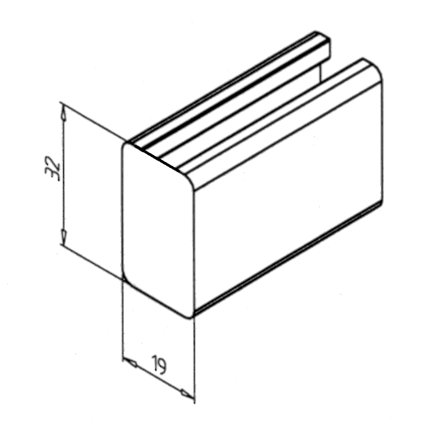 Pokrov profila 19 x 32. Aluminijast zaključni pokrov za zaščito robov alu profilov. Enostavna montaža, zanesljiva zaščita.
