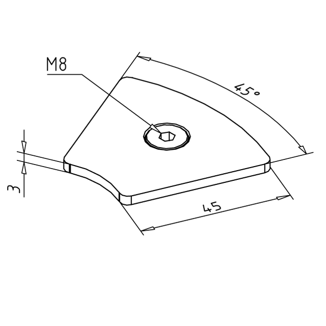 Pokrov profila 45 R 45°. Aluminijast zaključni pokrov za zaščito robov alu profilov. Enostavna montaža, zanesljiva zaščita.