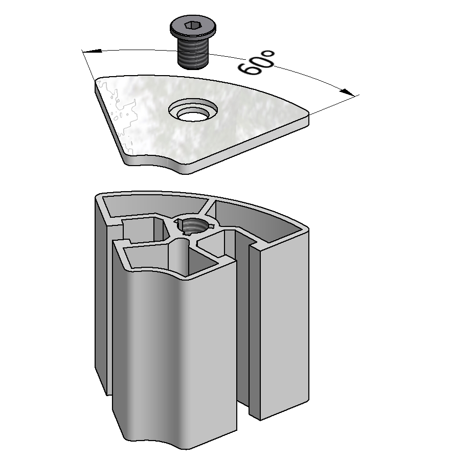 Pokrov profila 45 R 60°. Aluminijast zaključni pokrov za zaščito robov alu profilov. Enostavna montaža, zanesljiva zaščita.