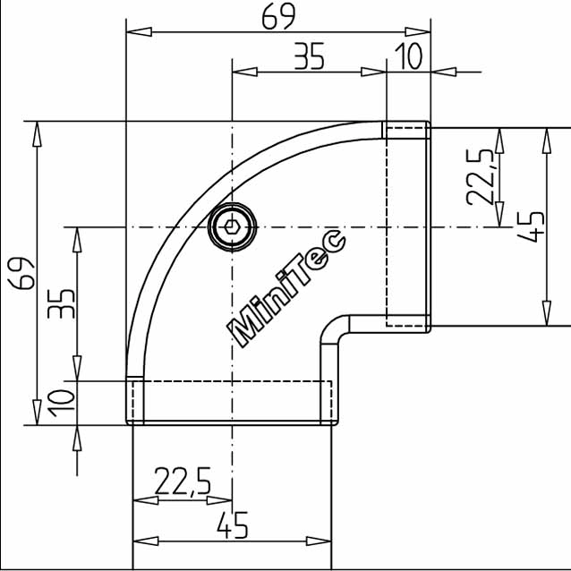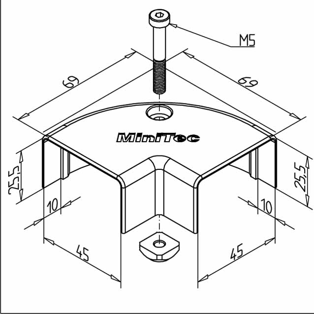 Kotnik 90° za kabelski kanal 45 AL za enostavno in trdno povezavo aluminijastih kanalov pod pravim kotom.