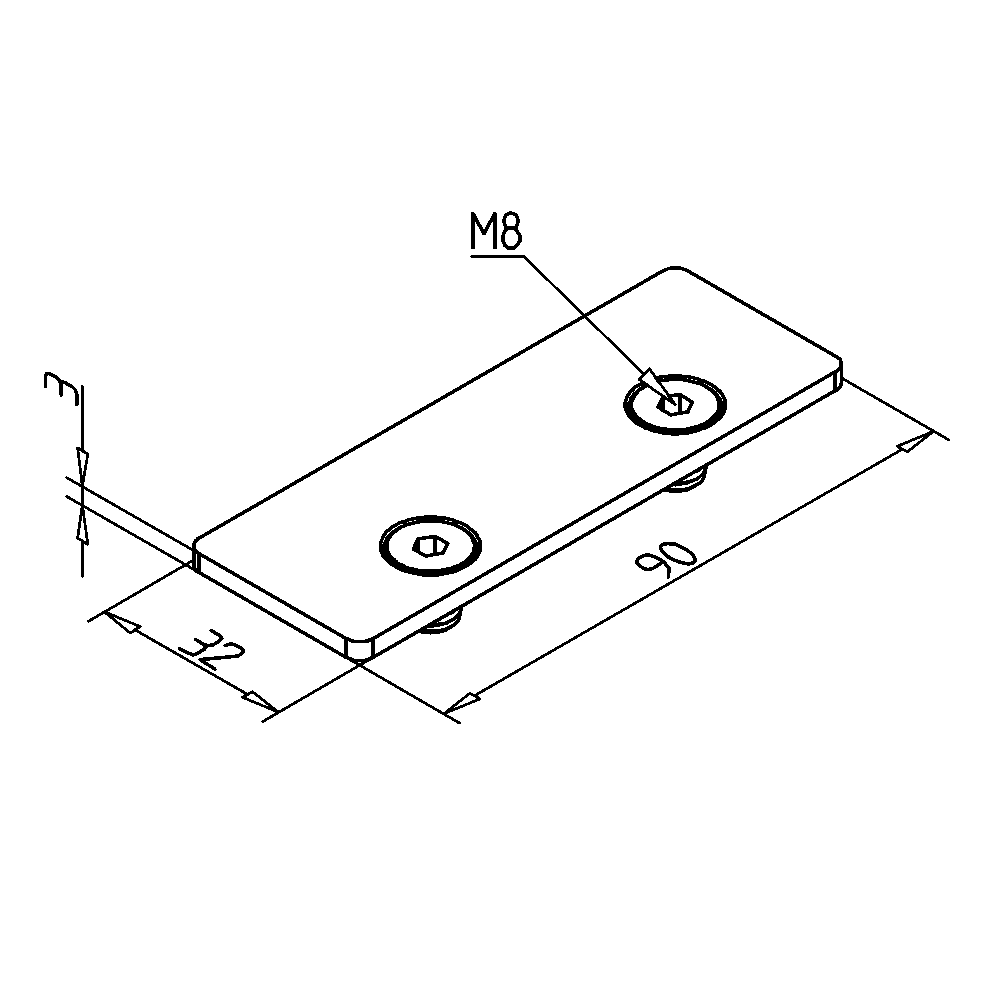 • Vstavite in privijte dva vijaka M8 v osrednjo izvrtino na čelni strani profila
