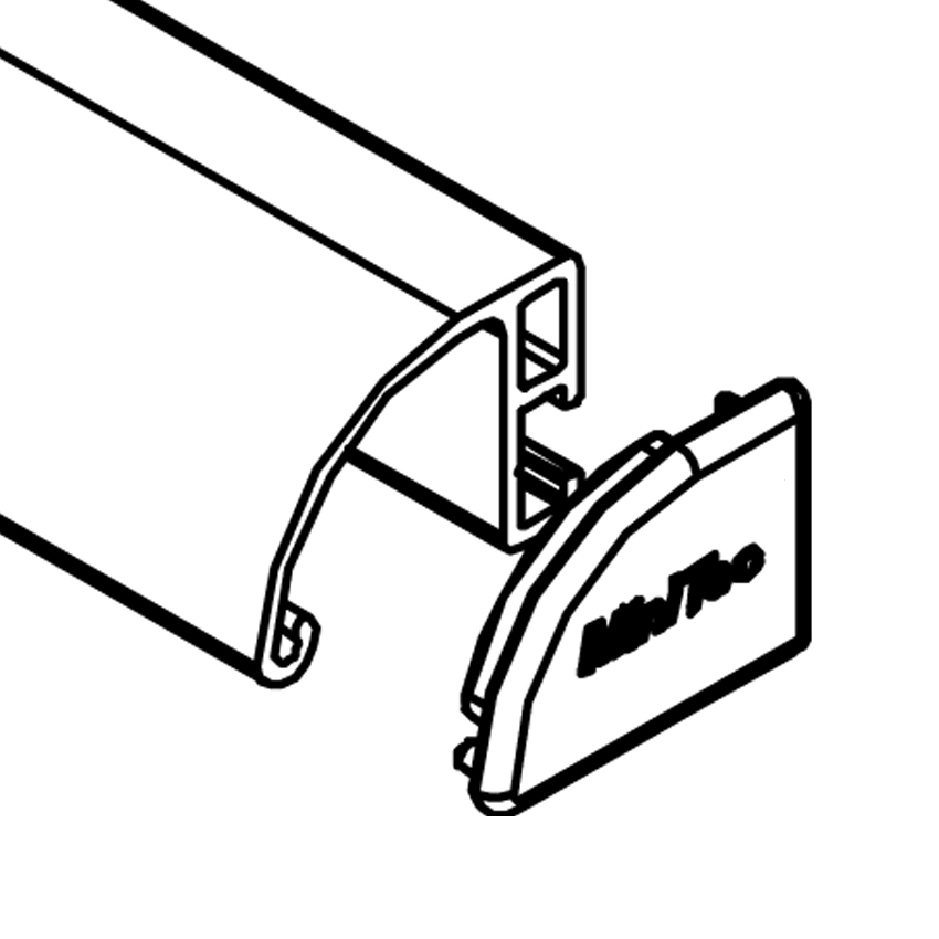 Pokrov desnega profila ročaja. Plastični zaključni pokrov za zaščito robov alu profilov. Enostavna montaža, zanesljiva zaščita.