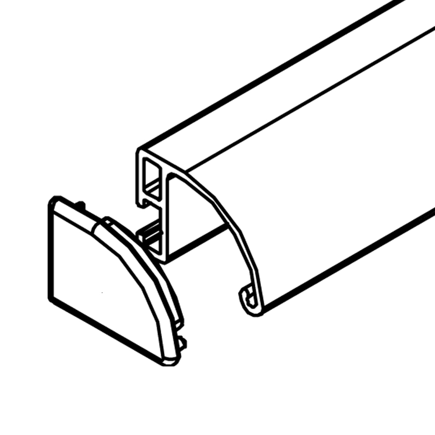 Pokrov levega profila ročaja. Plastični zaključni pokrov za zaščito robov alu profilov. Enostavna montaža, zanesljiva zaščita.