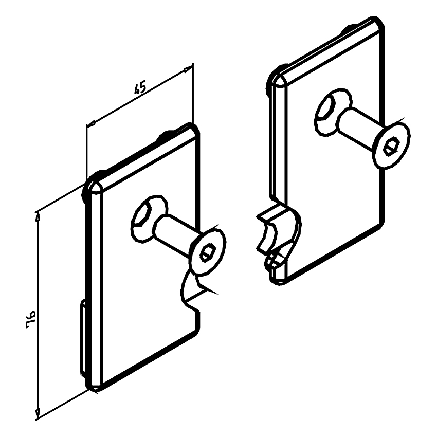 • Vstavite naoljene filce in pritisnite pritrdilni zatič v profil 45 x 45 nosilne plošče drsnika