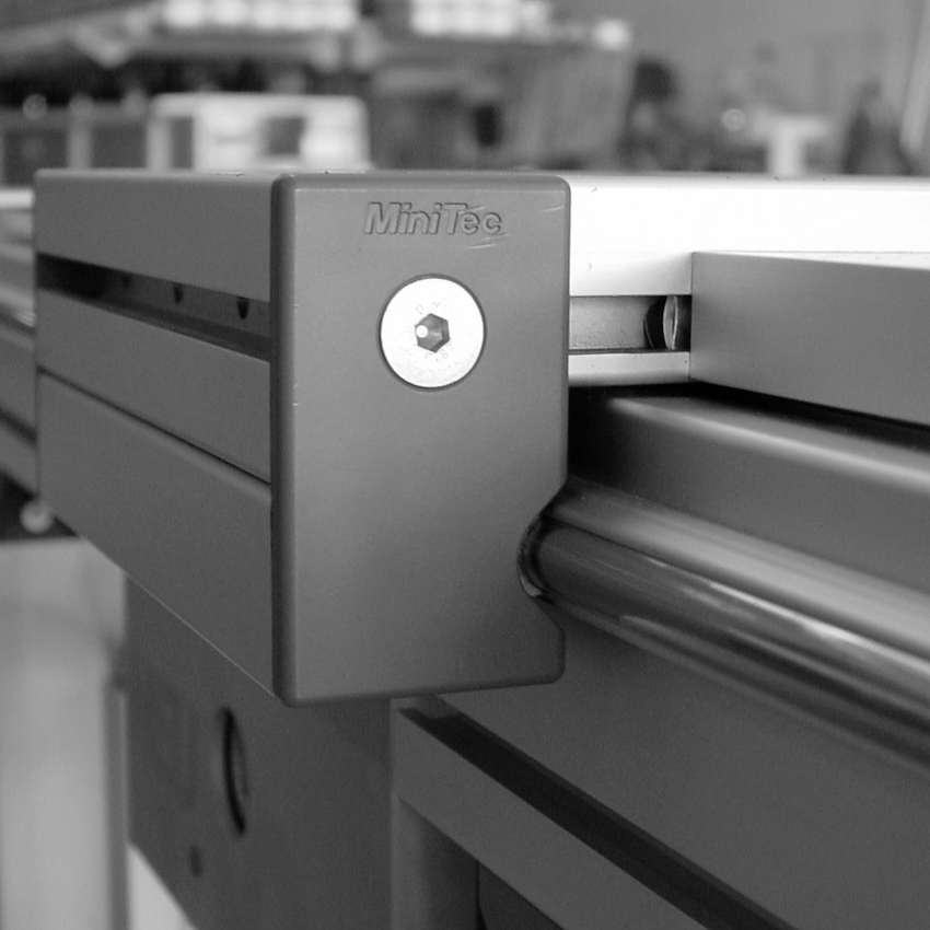 Levi zaključni pokrov v sivi barvi za linearne sisteme LR za zaščito in estetski zaključek linearnih vodil.