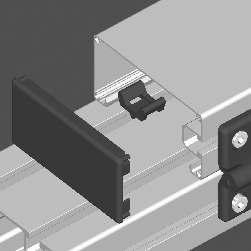 Zaključni pokrov za aluminijast kabelski kanal 90, zagotavlja estetsko in varno zaprtje aluminijastega kanala