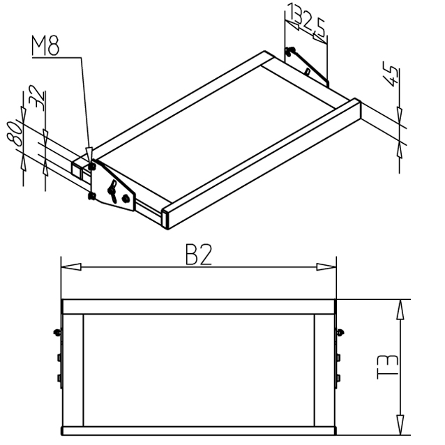 • Prosimo, navedite širino mize B2 in globino T3