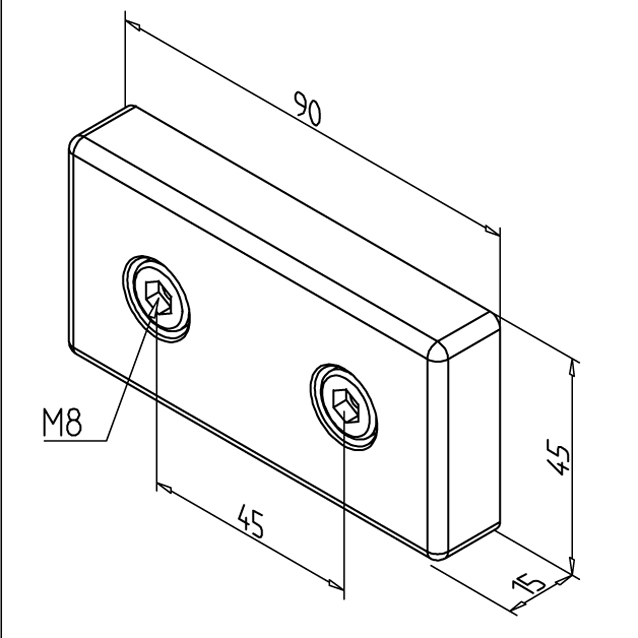 Povezovalna ploščica 45 x 90 za trdno povezavo dveh zaščitnih enot iz alu profilov brez vrzeli. Uporablja se za ojačitev enot in povezavo že sestavljenih modulov za stabilno konstrukcijo.