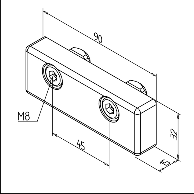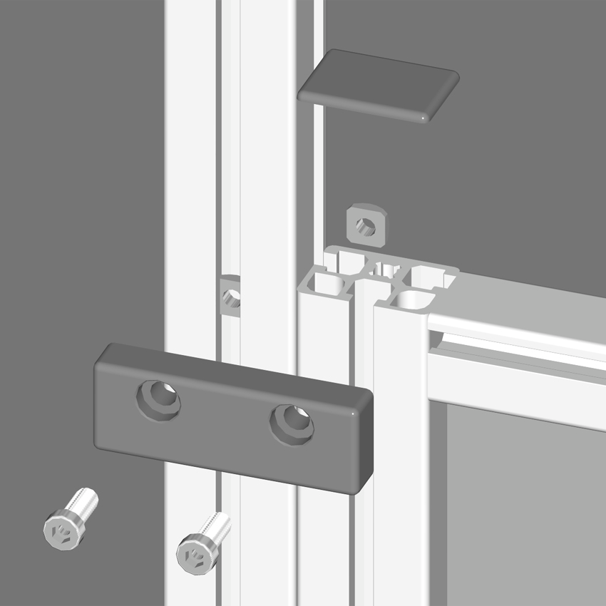 Povezovalna ploščica 90 x 32 za trdno povezavo dveh zaščitnih enot iz alu profilov brez vrzeli. Uporablja se za ojačitev enot in povezavo že sestavljenih modulov za stabilno konstrukcijo.