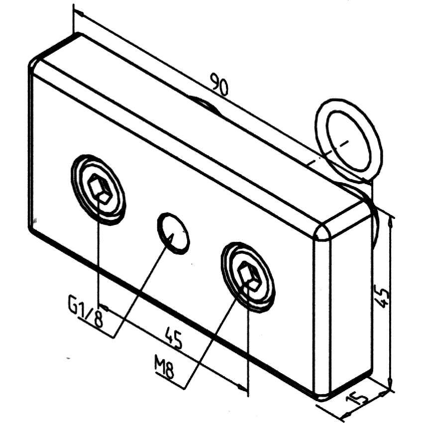 Pnevmatska osnovna plošča 45 z navojem G1/8" za enostavno pritrditev in povezavo pnevmatskih komponent v profilnih sistemih.