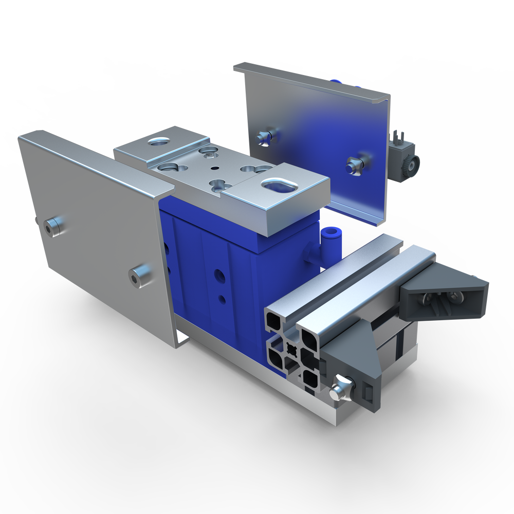 • Modul pripravljen za montažo z dvostranskim pnevmatskim cilindrom in ventilom