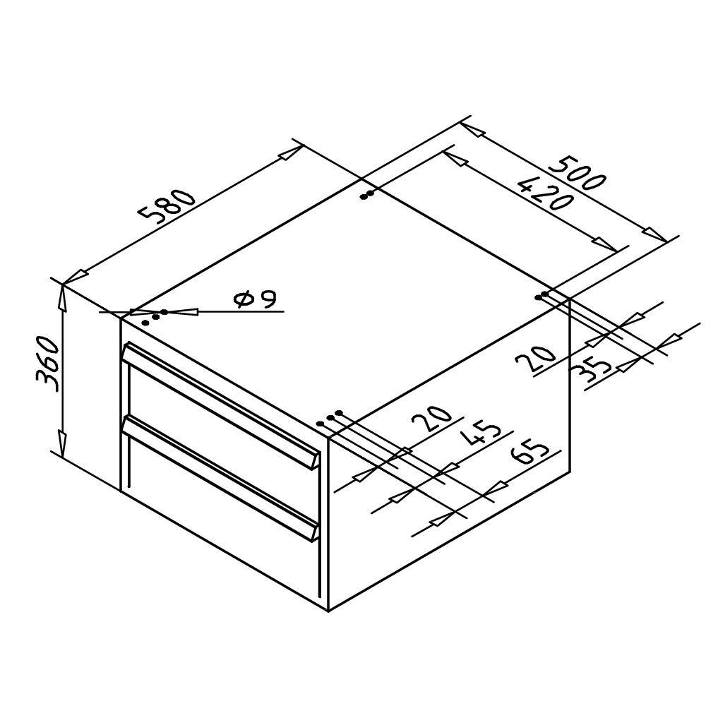 • 2 predala, V = 150 mm, s perforiranim dnom