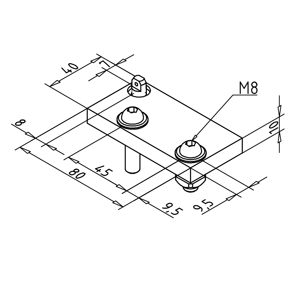 Sponka za verigo za vrata KI-32 omogoča varno pritrditev in natančno zategovanje verige na vratih aluminijastih profilnih sistemov.