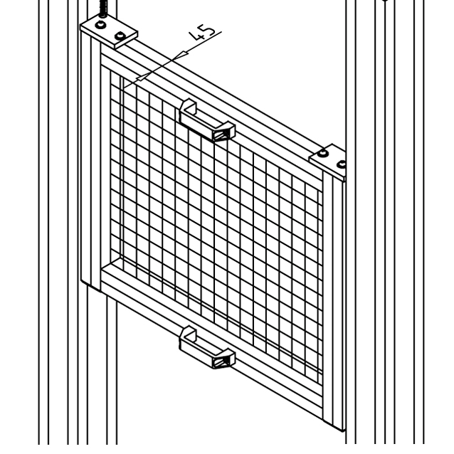 • Dvižna plošča iz profila 45 x 45 z drsnim valjčkom, nameščenim med stebri