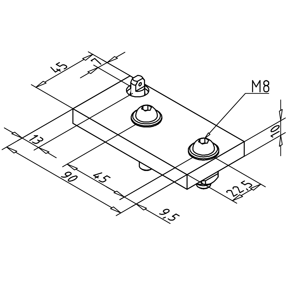 Sponka za verigo za vrata KV-45 omogoča varno pritrditev in natančno zategovanje verige na vratih aluminijastih profilnih sistemov.