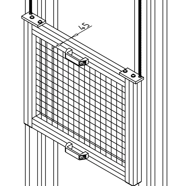 • Dvigalna plošča iz profila 45 x 45 s pomičnim kolesom, nameščenim pred stebri