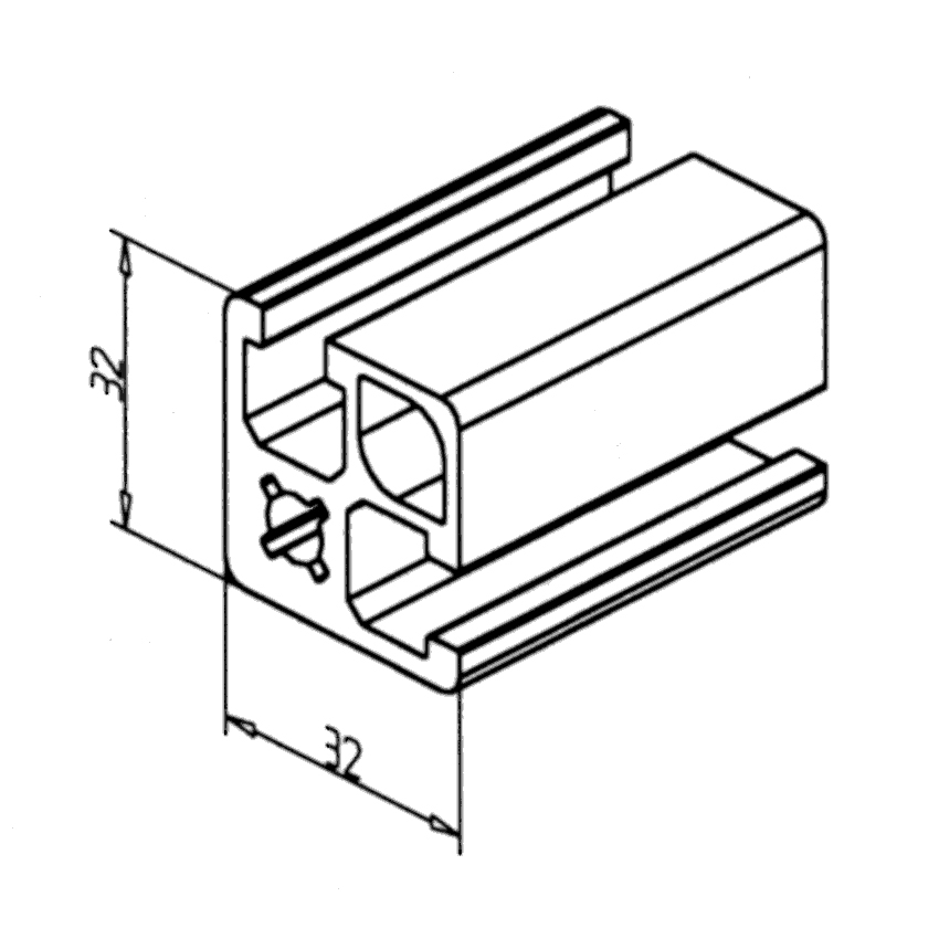 Alu profil 32 x 32 F za trdne konstrukcije in enostavno sestavljanje. Alu profili za sestavljanje in konstrukcije za industrijo in strojegradnjo.