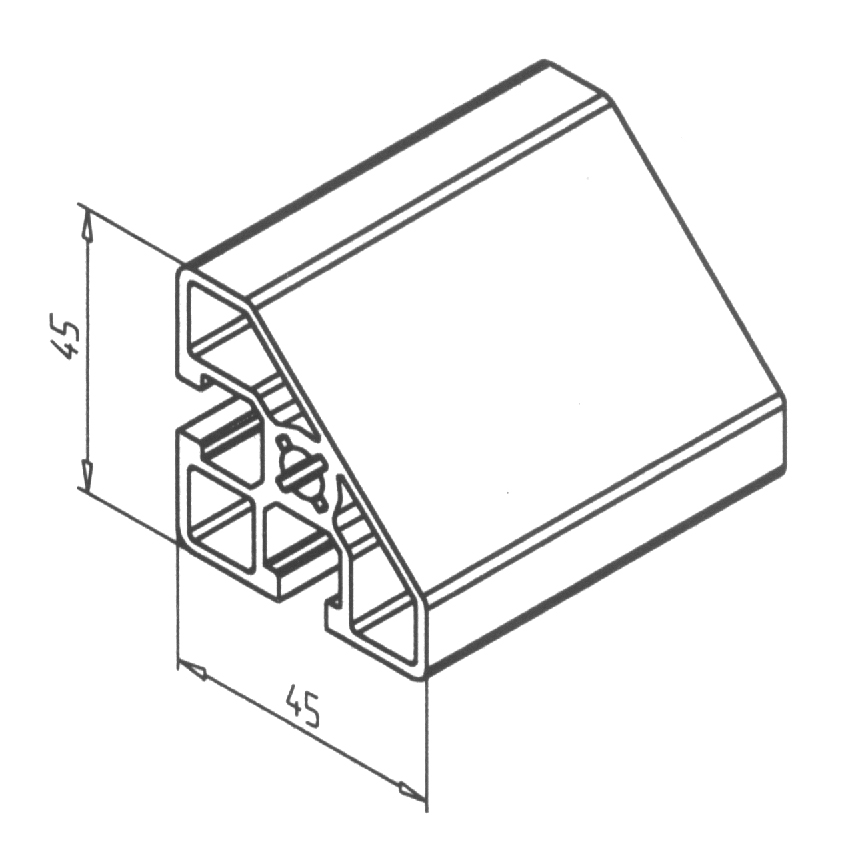 Alu profil 45/45° za trdne konstrukcije in enostavno sestavljanje. Alu profili za sestavljanje in konstrukcije za industrijo in strojegradnjo.