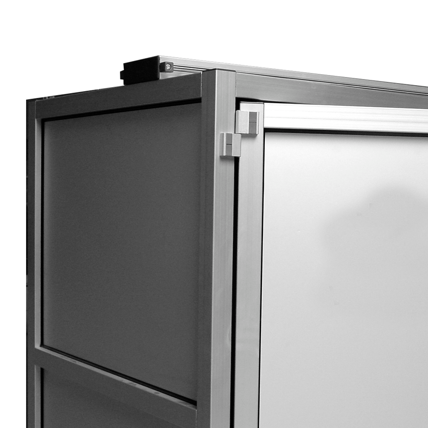 Minitec Power-Lock spojni element; za uporabo je treba na koncu profila z izvijačem utorov odpreti pokrov utora. Pokrovite z zaključnim čepom G ident št.221056/0