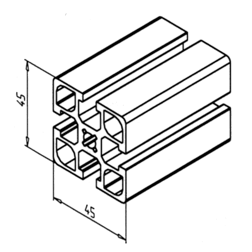 Alu profil 45 × 45 F za trdne konstrukcije in enostavno sestavljanje. Alu profili za sestavljanje in konstrukcije za industrijo in strojegradnjo.