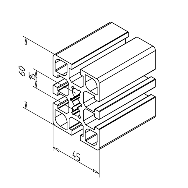 Alu profil 45 x 60 F za trdne konstrukcije in enostavno sestavljanje. Alu profili za sestavljanje in konstrukcije za industrijo in strojegradnjo.