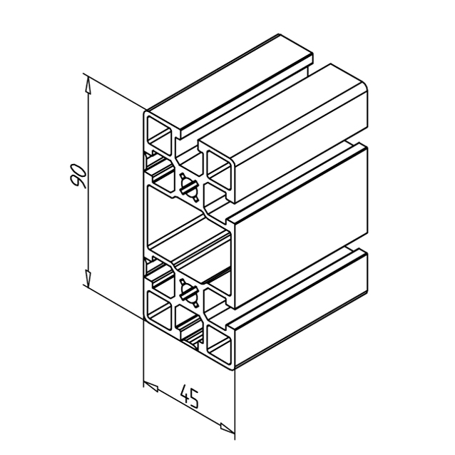 Alu profil 45 x 90 2G za trdne konstrukcije in enostavno sestavljanje. Alu profili za sestavljanje in konstrukcije za industrijo in strojegradnjo.