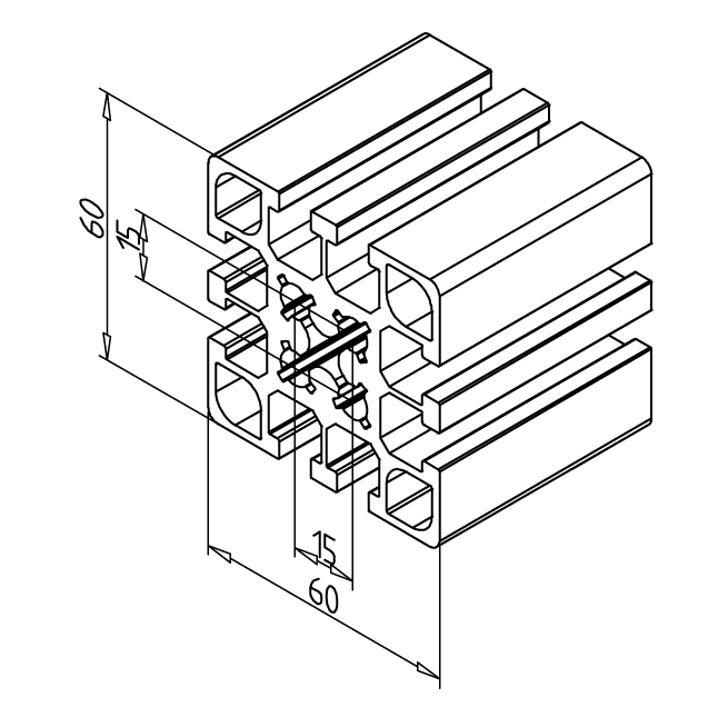 Alu profil 60 x 60 F za trdne konstrukcije in enostavno sestavljanje. Alu profili za sestavljanje in konstrukcije za industrijo in strojegradnjo.