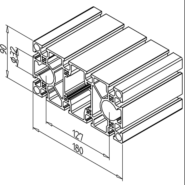 Alu profil 90 x 180 S za trdne konstrukcije in enostavno sestavljanje. Alu profili za sestavljanje in konstrukcije za industrijo in strojegradnjo.