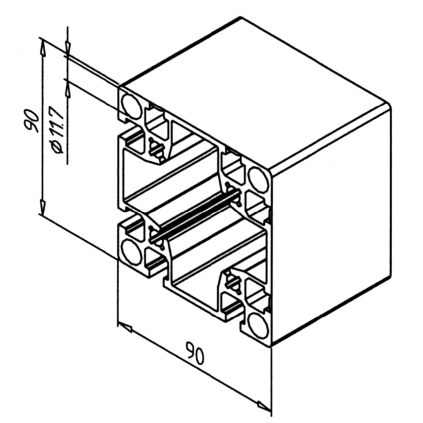 Alu profil 90 x 90 2G za trdne konstrukcije in enostavno sestavljanje. Alu profili za sestavljanje in konstrukcije za industrijo in strojegradnjo.