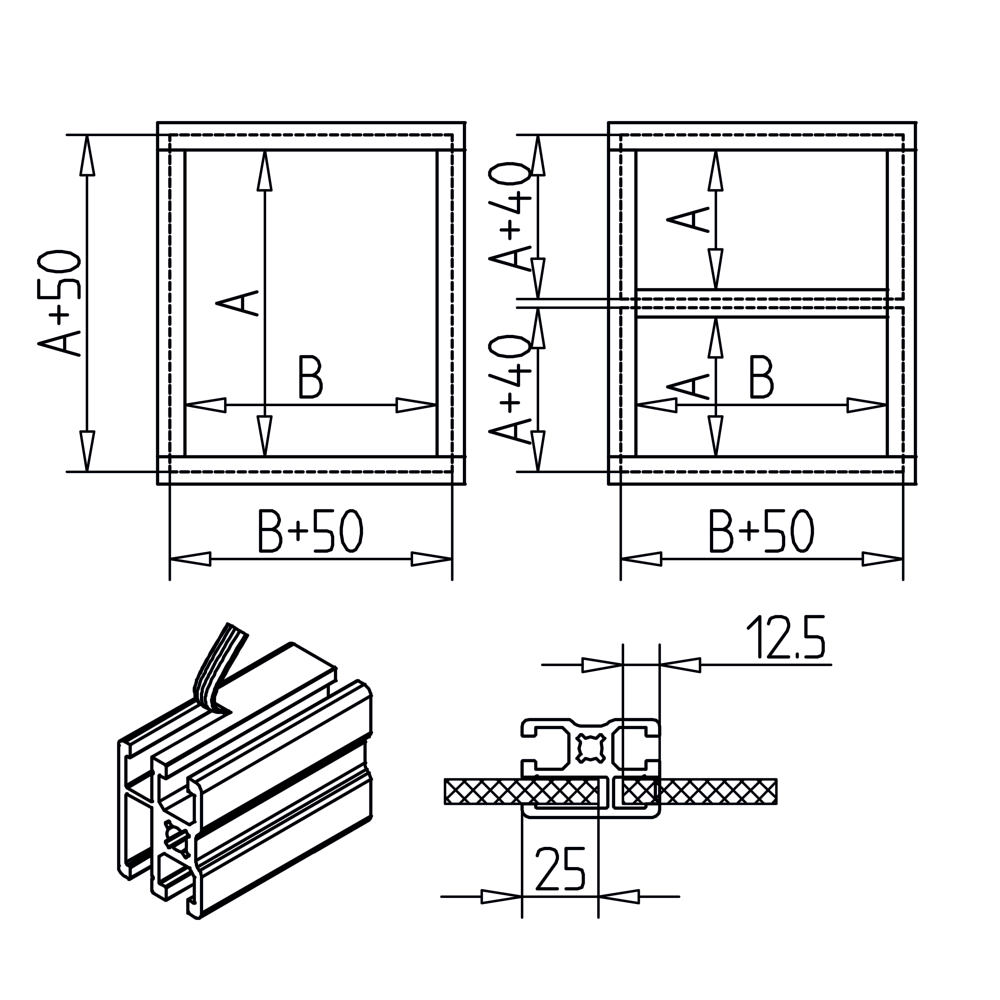 dimenzija A/B - 40/50 mm, odvisno od uporabe