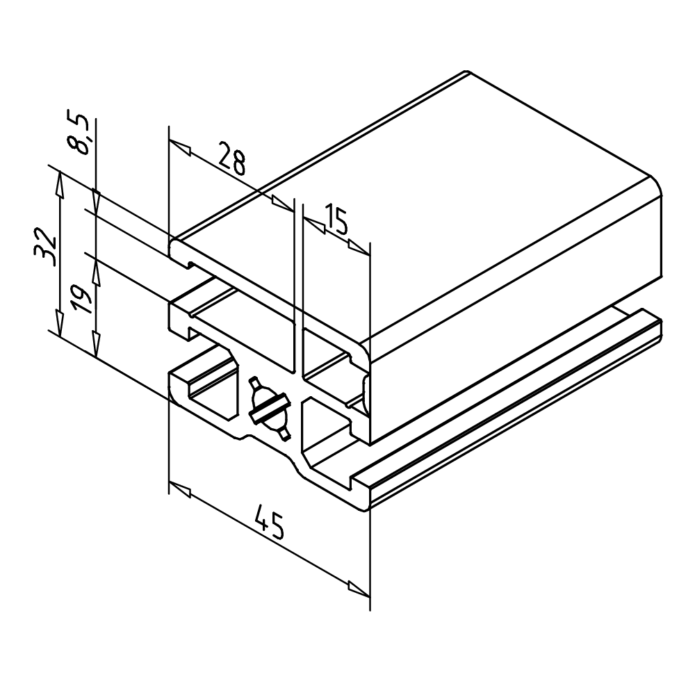 Alu profil 45 x 32 za trdne konstrukcije in enostavno sestavljanje. Alu profili za sestavljanje in konstrukcije za industrijo in strojegradnjo.