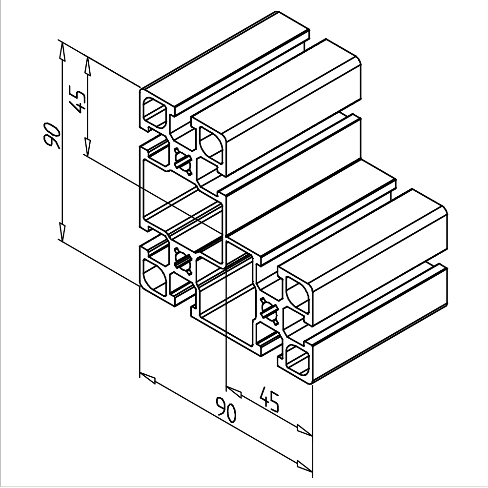 Alu profile 90 x 90 x 45 for industrial use. Explore our aluminium profile system – strong, modular, and easy to assemble.