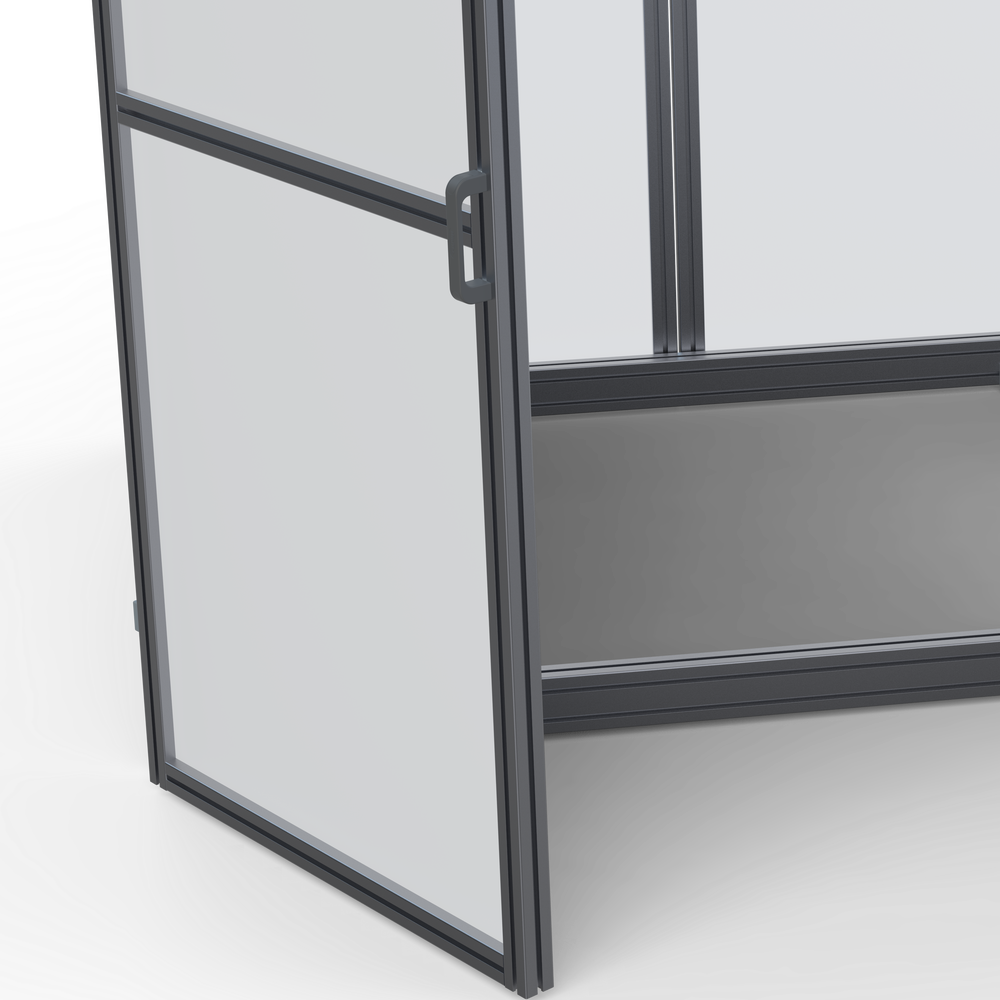 Ročaj za vrata 135-45 v sivi barvi za varen in udoben oprijem na zaščitnih vratih iz aluminijastih profilov.