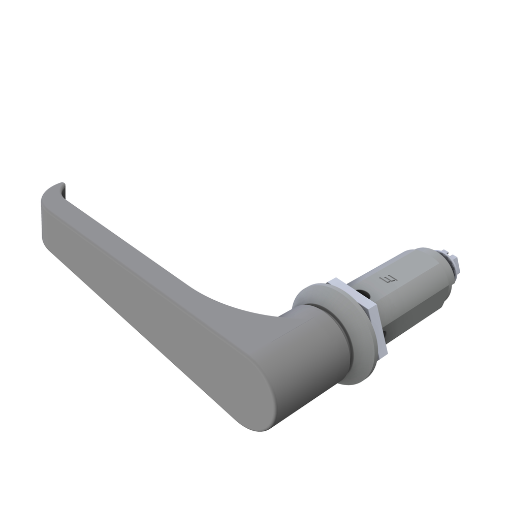 Ročaj za vrata 32 v sivi barvi za varno in zanesljivo zapiranje zaščitnih vrat in panelov v industrijskih okoljih.