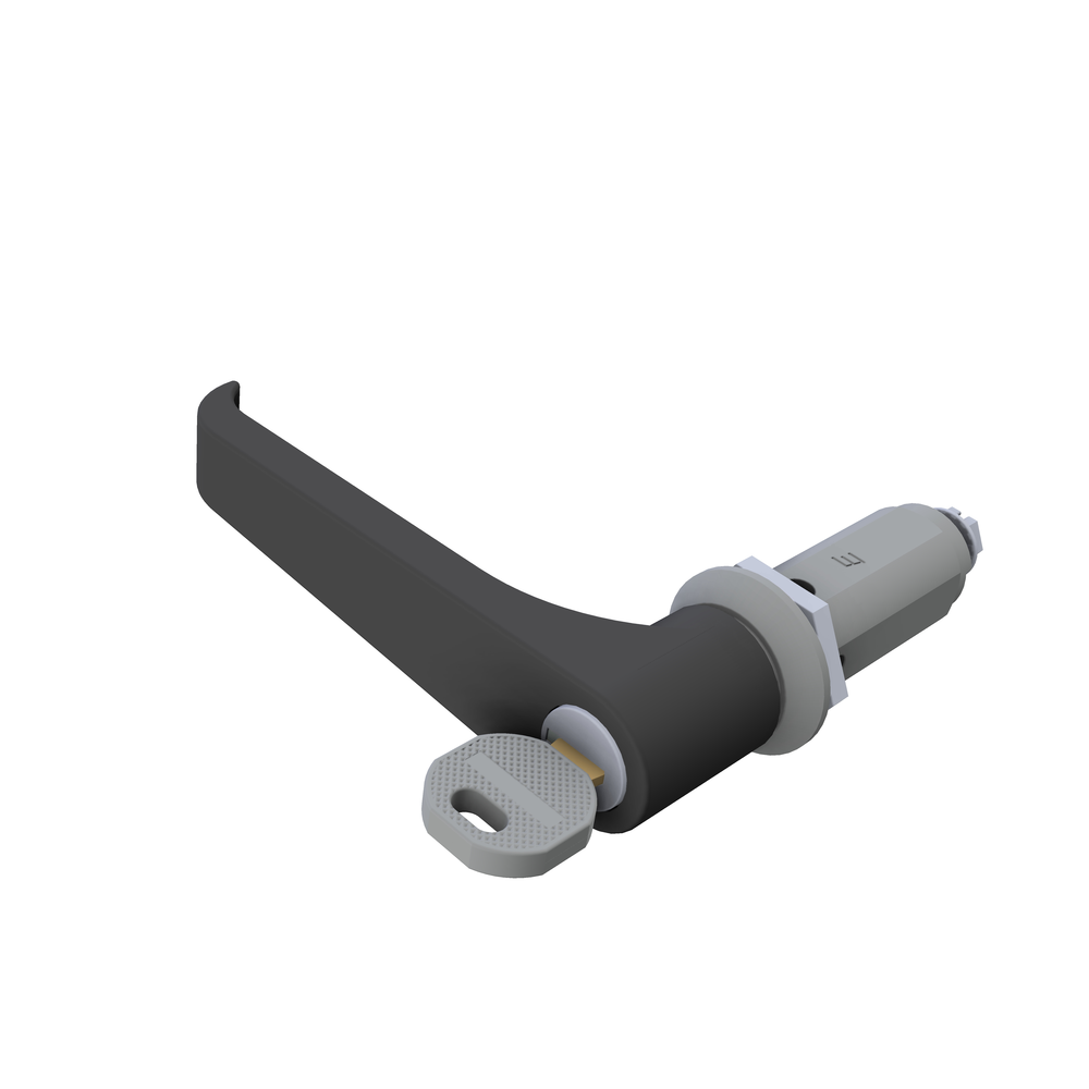 Ročaj za vrata 32 s ključavnico v črni barvi za varno in zanesljivo zapiranje zaščitnih vrat in panelov v industrijskih okoljih.