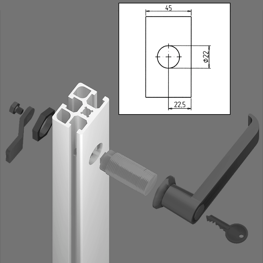 • Priporočeno: izvrtajte luknjo Ø 22 mm na sredini profila, zaščita proti vrtenju F ident št. 210941/0