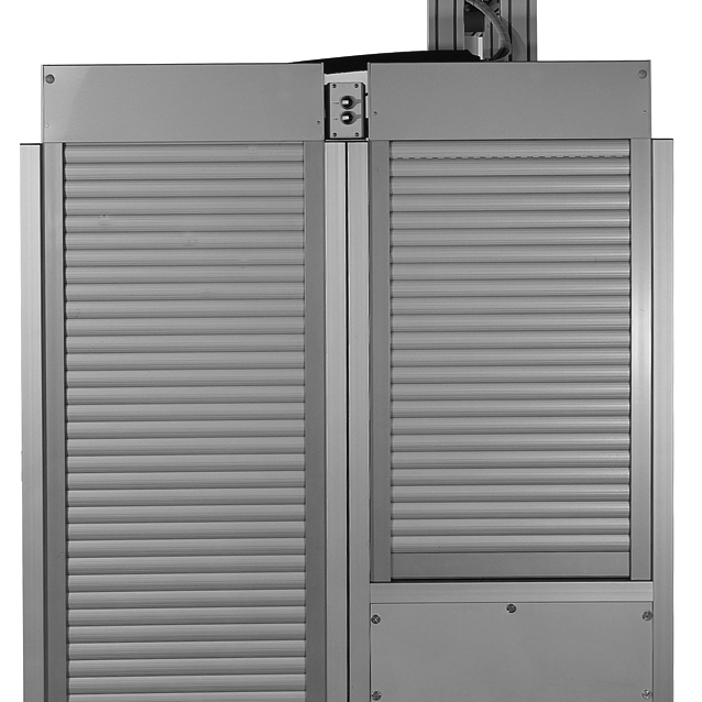 Dvižna rolo vrata z električnim pogonom za omarice, stojala in zaščite strojev – kompaktna, varna in učinkovita rešitev.