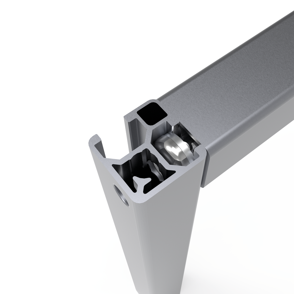 • Fix the screw with the anti-rotation device on the horizontal profile and insert it into the groove of the vertical profile