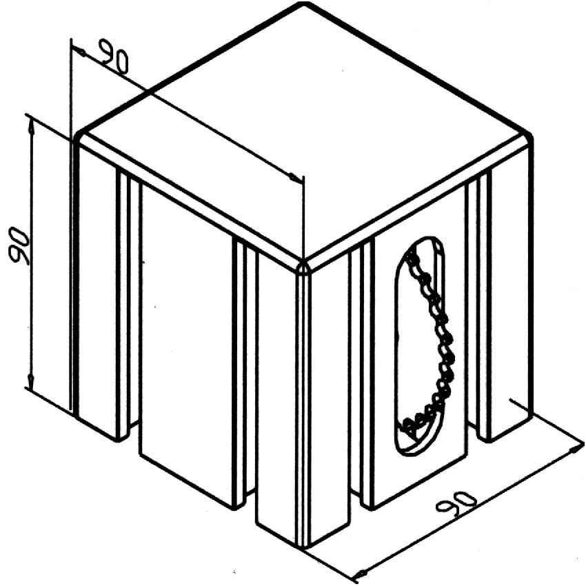 • Enota za preusmeritev verige protiuteži na dvigalnih vratih, za notranjo uravnotežitveno težo v profilu 90 x 90 L