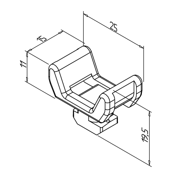 Kabelska sponka za kabelske kanale 27–45, ki omogoča varno pritrditev in organizacijo kablov v aluminijastih konstrukcijah.