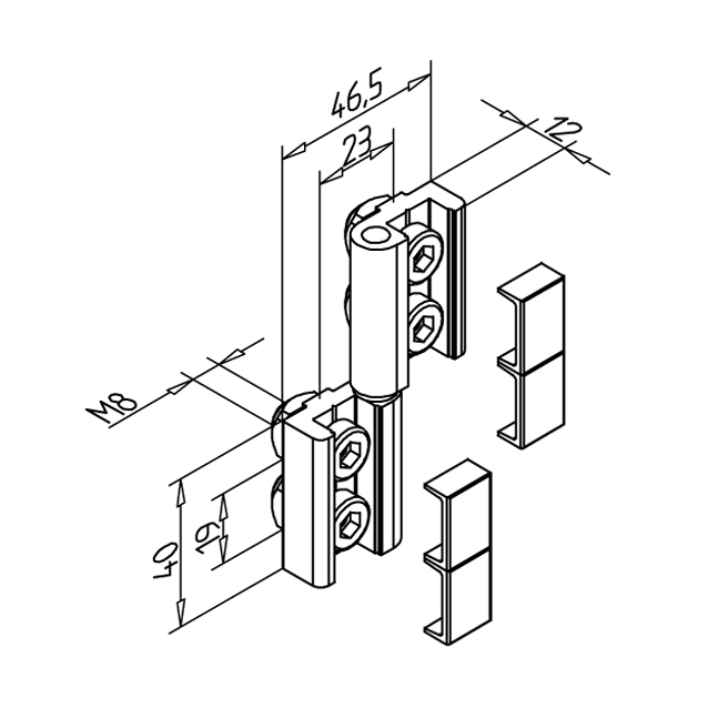 Tečaj 19 za aluminijaste profile omogoča zanesljivo odpiranje vrat in pokrovov v zaščitnih enotah ter industrijskih konstrukcijah.