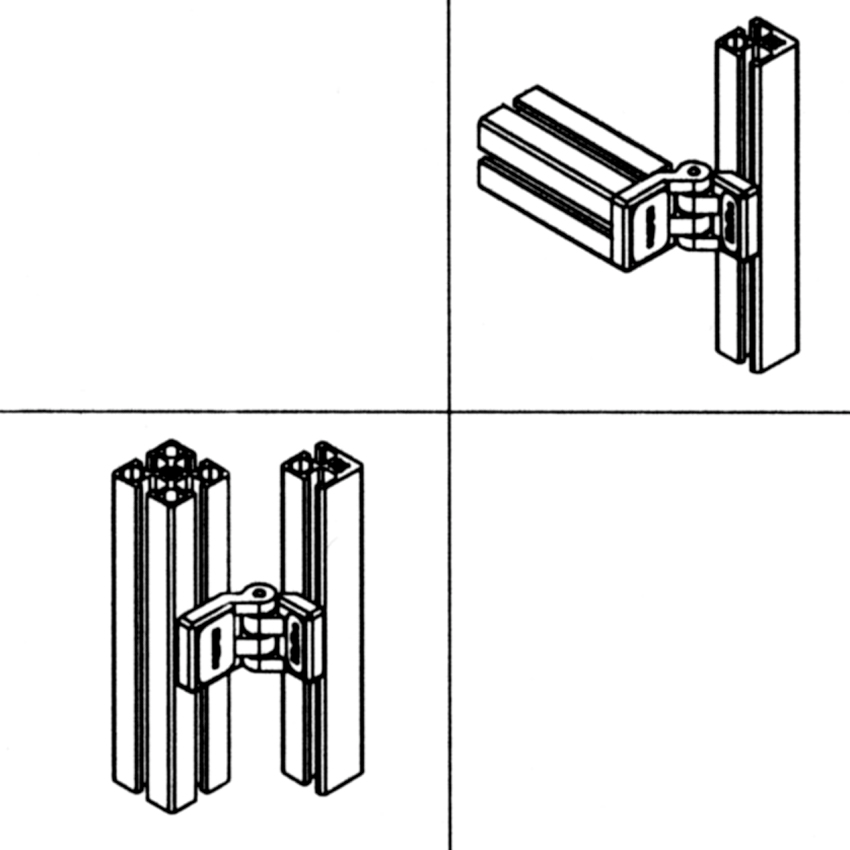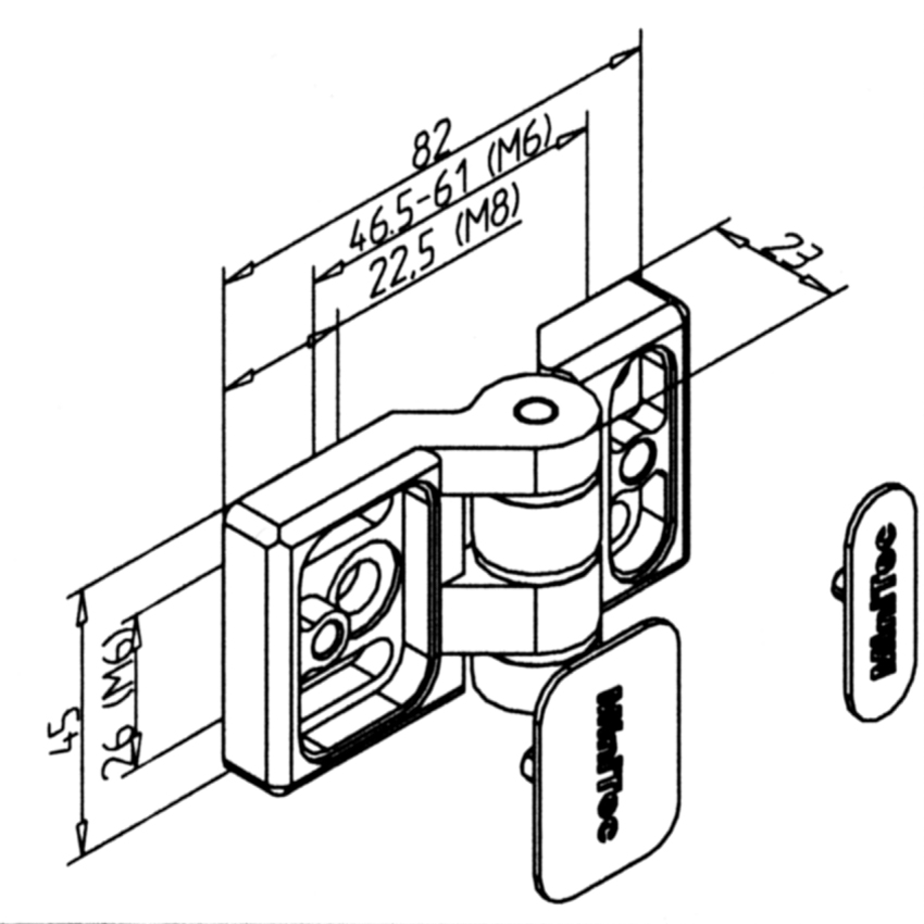 Drugo polovico tečaja pritrdite na profil 45 x 45 z vijakom M8 x 30 ali z 2 vijakoma M6 x 18