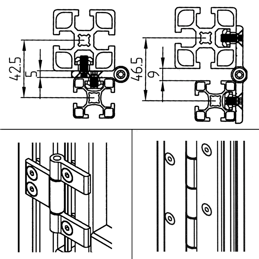 Če so tečaji nameščeni v nasprotni smeri, je mogoče izdelati tudi neodstranljive in vodoravno nameščene konstrukcije
