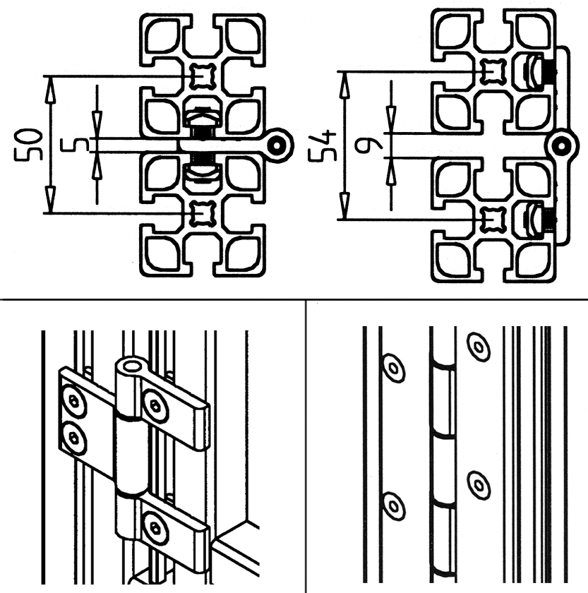 • Odstranljiva vrata, pokrovi, premični deli na profilih 45