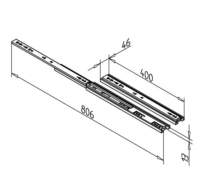 • Montažna dolžina 400 mm, izvlečna dolžina 406 mm