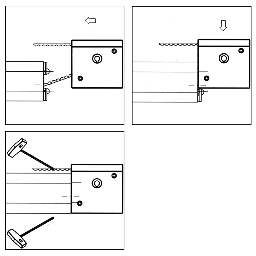 Make thread M8 in both ends of the rail, screw in power-lock fastener part. no.211018/1