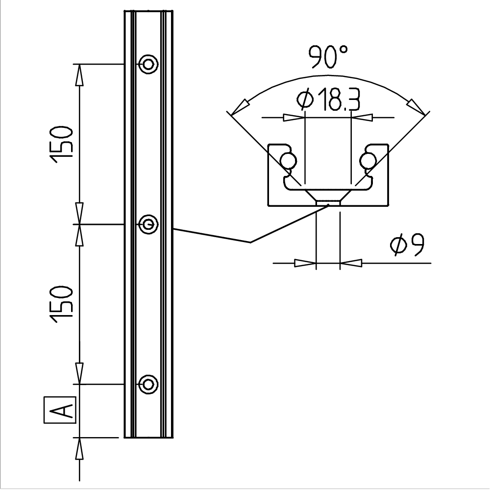 Izvrtano in pripravljeno za montažo ø 8 mm, razmik 150 mm