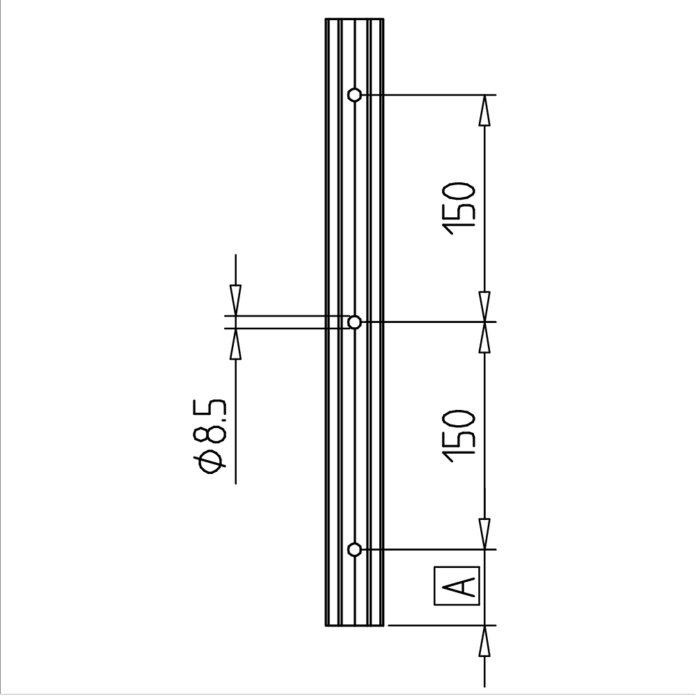 • Izvrtano in pripravljeno za montažo ø 8 mm, razmik 150 mm