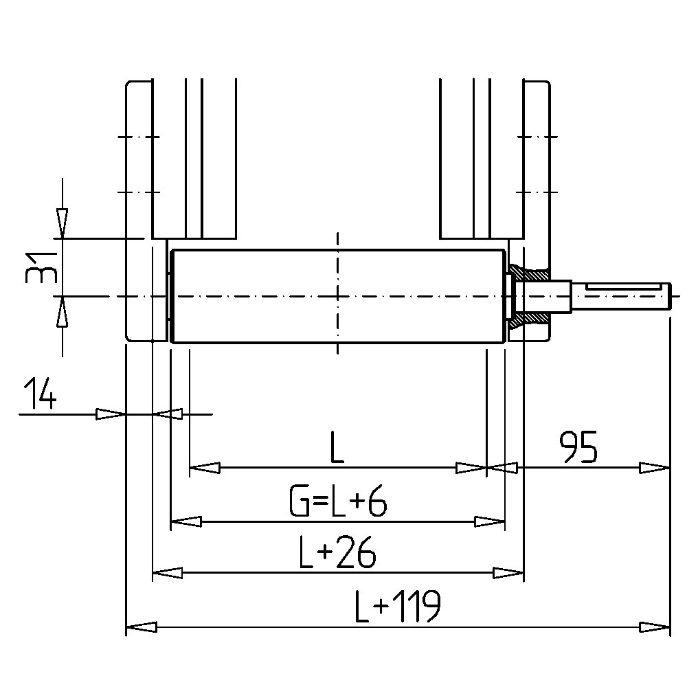 VALJ POGONSKI 45 ZA TRAČNI TRANSP. Z GREDJO D16mm NERJAVEČ