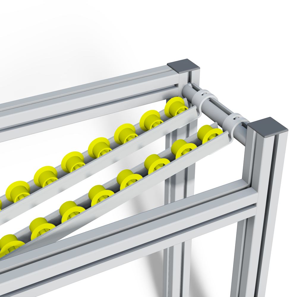 Valjčni trak s prirobničnimi valjčki zagotavlja varno vodenje materiala, preprečuje zdrse in omogoča zanesljiv transport v proizvodnji.